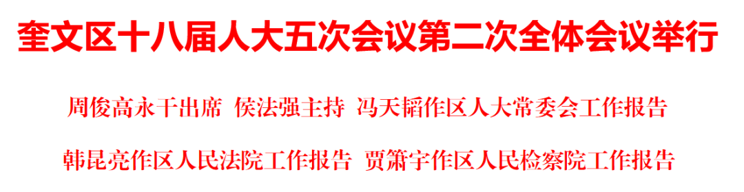 會議聽取了區(qū)人大常委會主任馮天韜作的濰坊市奎文區(qū)人民代表大會常務(wù)委員會工作報告;區(qū)法院代理院長韓昆亮作的濰坊市奎文區(qū)人民法院工作報告;區(qū)檢察院代理檢察長賈簫宇作的濰坊市奎文區(qū)人民檢察院工作報告。