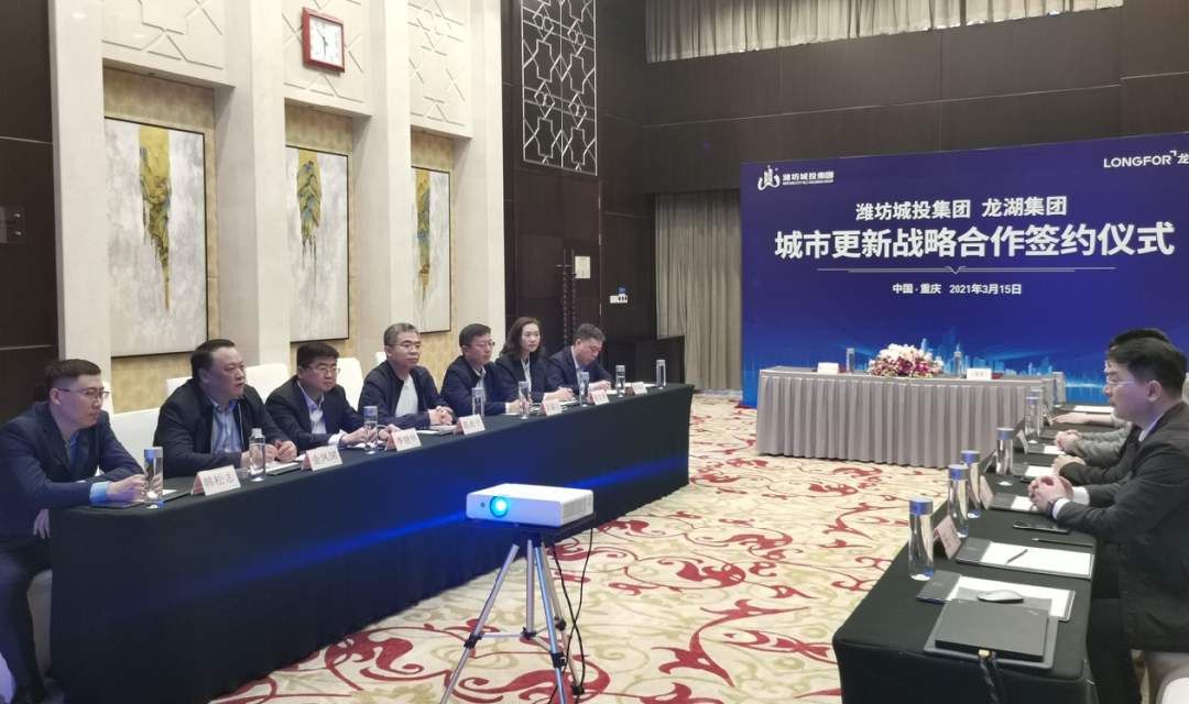 3月15日下午,濰坊城投集團(tuán)在重慶市渝州賓館與龍湖集團(tuán)舉行奎文區(qū)城市更新項(xiàng)目戰(zhàn)略合作協(xié)議簽約儀式并座談??膮^(qū)委副書記、區(qū)長高永干,濰坊城投集團(tuán)黨支部書記、董事長金鳳國,龍湖集團(tuán)煙威濰區(qū)域總經(jīng)理趙建華,區(qū)有關(guān)部門領(lǐng)導(dǎo)及雙方有關(guān)人員出席。