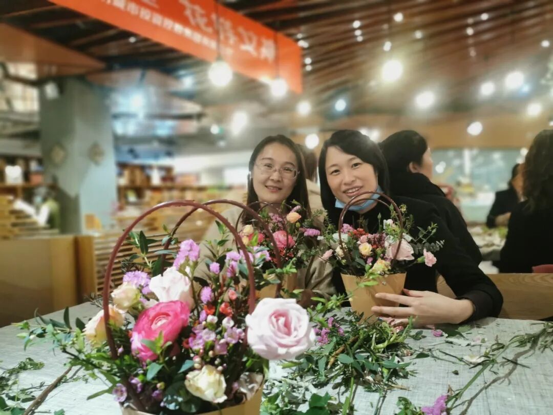 本次活動特邀專業(yè)的花藝師,為大家教授插花方法?;顒娱_始,老師為大家講解了插花的種類和插花過程中需注意的問題,并現(xiàn)場展示了幾種經(jīng)典的插花造型。插花是一種意境,是當(dāng)下心靈的側(cè)寫,也是當(dāng)下新時代女性積極向上的生活態(tài)度和生活方式。隨后大家領(lǐng)取了插花所需的各項材料后,紛紛行動起來,現(xiàn)場頓時春意盎然。大家盡情發(fā)揮著自己的想象,擺花、包扎、系繩、打?qū)哟?、擺造型,每一個步驟,每一道工序,都做得一絲不茍,各種鮮花轉(zhuǎn)眼間就被她們賦予了靈性,形成了一件件獨具匠心又飽含深意的插花作品。