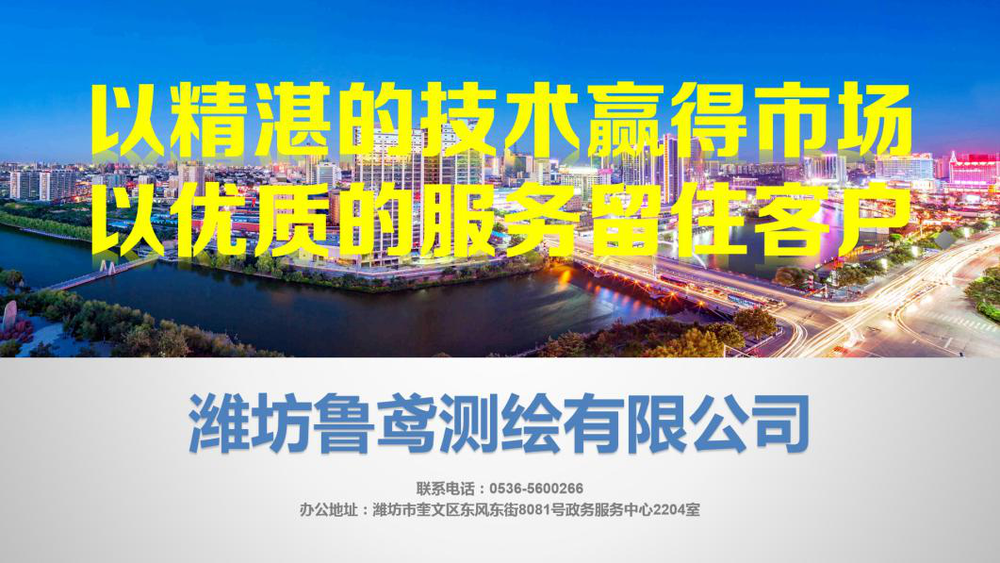 濰坊魯鳶測繪有限公司是濰坊市骨干測繪機構(gòu)之一,公司測量手段先進,質(zhì)保體系健全,具有專業(yè)齊全、技術(shù)密集、全方位服務(wù)的優(yōu)勢。業(yè)務(wù)立足五區(qū),輻射全市,與全市測繪同行優(yōu)勢互補,密切合作,是一支在五區(qū)乃至全市區(qū)域內(nèi)政府倚重、客戶信任、與時俱進、實力強盛的綜合型測繪工程技術(shù)服務(wù)團隊。