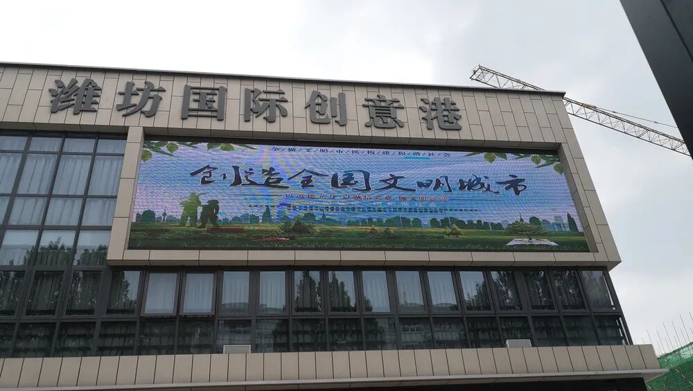 濰坊國際文化創(chuàng)意產(chǎn)業(yè)園循環(huán)播放創(chuàng)建文明城市公益宣傳標(biāo)語,號(hào)召全體市民展現(xiàn)良好精神風(fēng)貌,為文明城市爭光添彩,積極參與到文明城市的創(chuàng)建工作中。