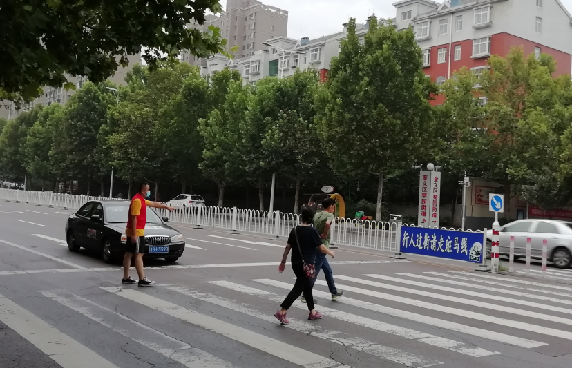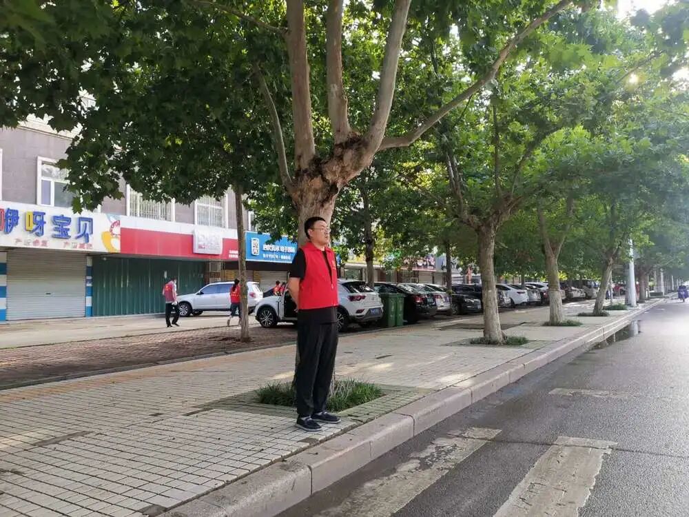 集團(tuán)全體工作人員與社區(qū)工作人員一同上下崗,在各路口執(zhí)勤,助力交通文明出行。