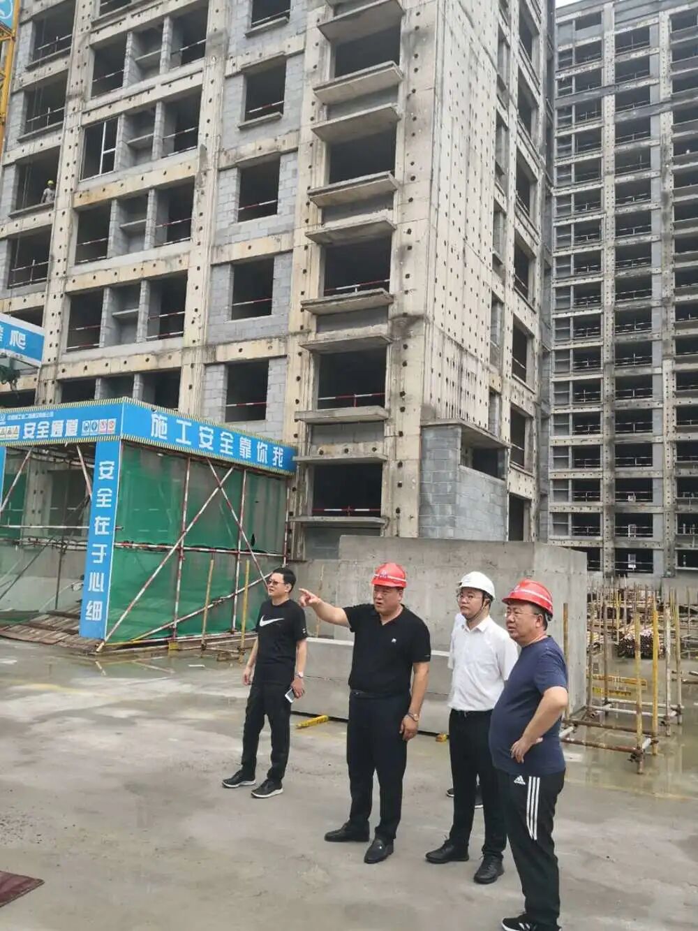 金鳳國(guó)董事長(zhǎng)現(xiàn)場(chǎng)向施工單位項(xiàng)目負(fù)責(zé)人了解了防風(fēng)防汛工作落實(shí)情況,實(shí)地查看了現(xiàn)場(chǎng)樓棟的屋面、車庫(kù)等易發(fā)生內(nèi)澇險(xiǎn)情的區(qū)域,了解易澇區(qū)域采取的防、排水措施,以及戶外設(shè)備設(shè)施加固、清理情況;查看了在建工程的塔吊、腳手架、基坑、臨時(shí)用電區(qū)域等安全風(fēng)險(xiǎn)高發(fā)地,認(rèn)真詢問(wèn)了人員值守和應(yīng)急搶險(xiǎn)物資配備情況,并召開了現(xiàn)場(chǎng)座談會(huì),聽取項(xiàng)目建設(shè)相關(guān)工作匯報(bào)。金鳳國(guó)董事長(zhǎng)對(duì)防汛工作及項(xiàng)目建設(shè)提出以下要求: