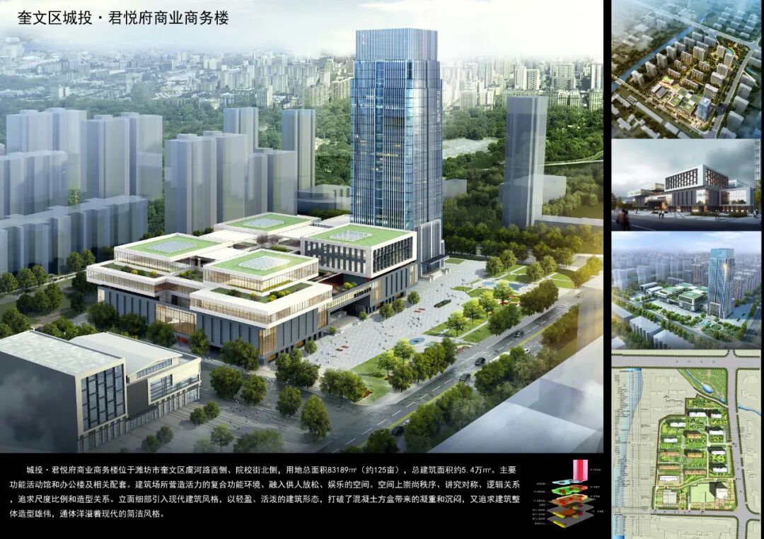 城投·君悅府商業(yè)商務(wù)樓位于濰坊市奎文區(qū)虞河路西側(cè)、院校街北側(cè),用地總面積83189㎡(約125畝),總建筑面積約5.4萬㎡。主要功能活動(dòng)館和辦公樓及相關(guān)配套。建筑場所營造活力的復(fù)合功能環(huán)境、融入供人放松、娛樂的空間。空間上崇尚秩序、講究對稱、邏輯關(guān)系追求尺度比例和造型關(guān)系。立面細(xì)部引入現(xiàn)代建筑風(fēng)格,以輕盈、活潑的建筑形態(tài),打破了混凝土方盒帶來的凝重和沉悶,又追求建筑整體造型雄偉,通體洋溢著現(xiàn)代的簡潔風(fēng)格。