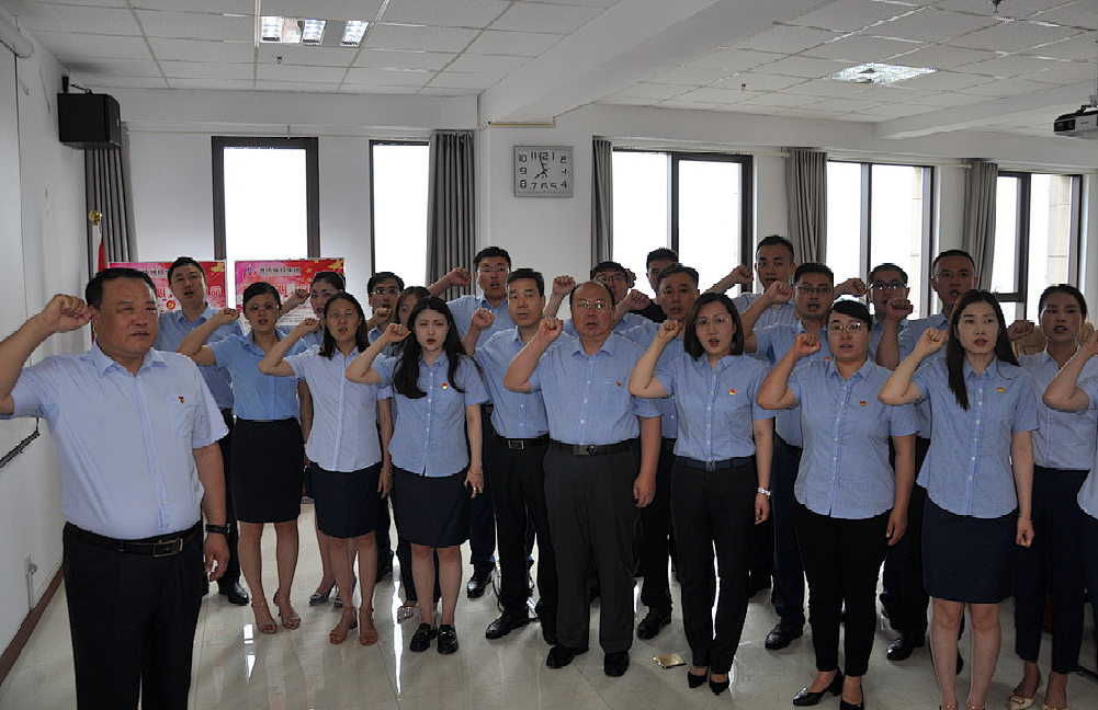 初心如磐,使命在肩。升旗儀式結(jié)束后,全體黨員在黨團(tuán)活動(dòng)室進(jìn)行了重溫入黨誓詞活動(dòng),黨支部書記金鳳國同志帶領(lǐng)全體黨員面向鮮艷的黨旗整齊列隊(duì),舉起右手莊嚴(yán)宣誓:“我志愿加入中國共產(chǎn)黨,擁護(hù)黨的綱領(lǐng)......為共產(chǎn)主義奮斗終身,隨時(shí)準(zhǔn)備為黨和人民犧牲一切,永不叛黨?!辩H鏘誓言響徹現(xiàn)場、久久回蕩。全體黨員在慷慨激昂的宣誓聲中深深地感受到黨員的責(zé)任、使命和榮耀。